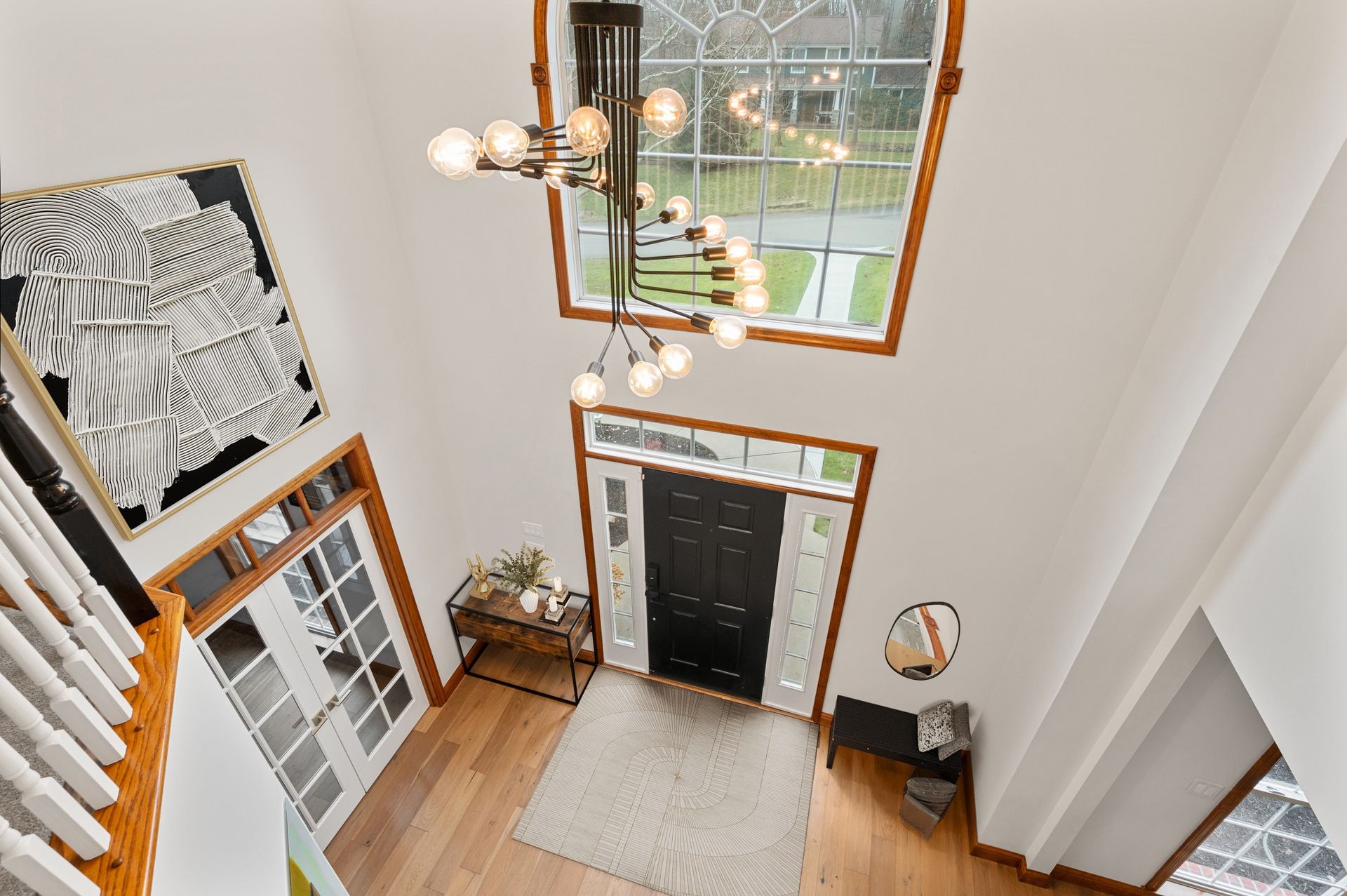 The client loved their existing high gloss millwork, so we conceived everything around that. Our favorite part of the home is the electric periwinkle primary bath with gray, black and white accents. The clients said their friends can’t stop swooning over their sage kitchen with gray quartz counters and oyster shell backsplash. Let us know what your favorite part is.
